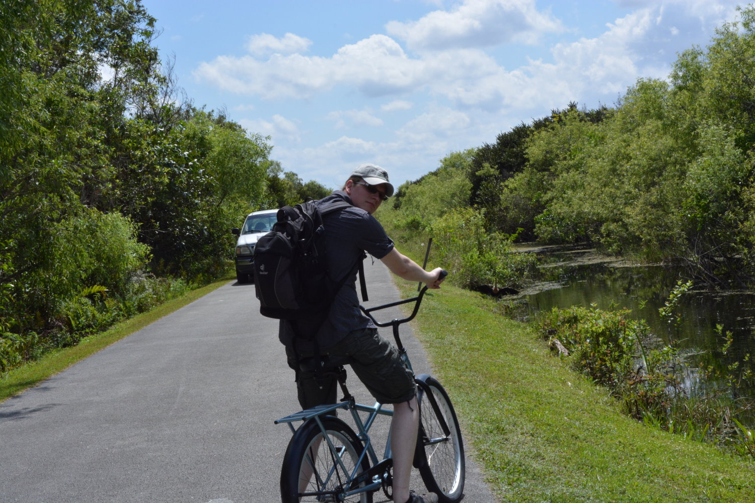 Die bekannteste Erkundungsart der Everglades ist per Sumpfboot, aber unser Reiseführer riet davon ab, da die Dinger sehr laut sind und man damit die Tiere vor allem verscheucht. Auch pressen die Boote neue unnatürliche Wasserwege in das Gras, wenn sie darüberfahren. Wir nutzten daher zwei Alternativen: Eine Fahrradtour durch das Shark-Valley am ersten Tag, und eine Kajaktour durch die südlichen Everglades am zweiten Tag.