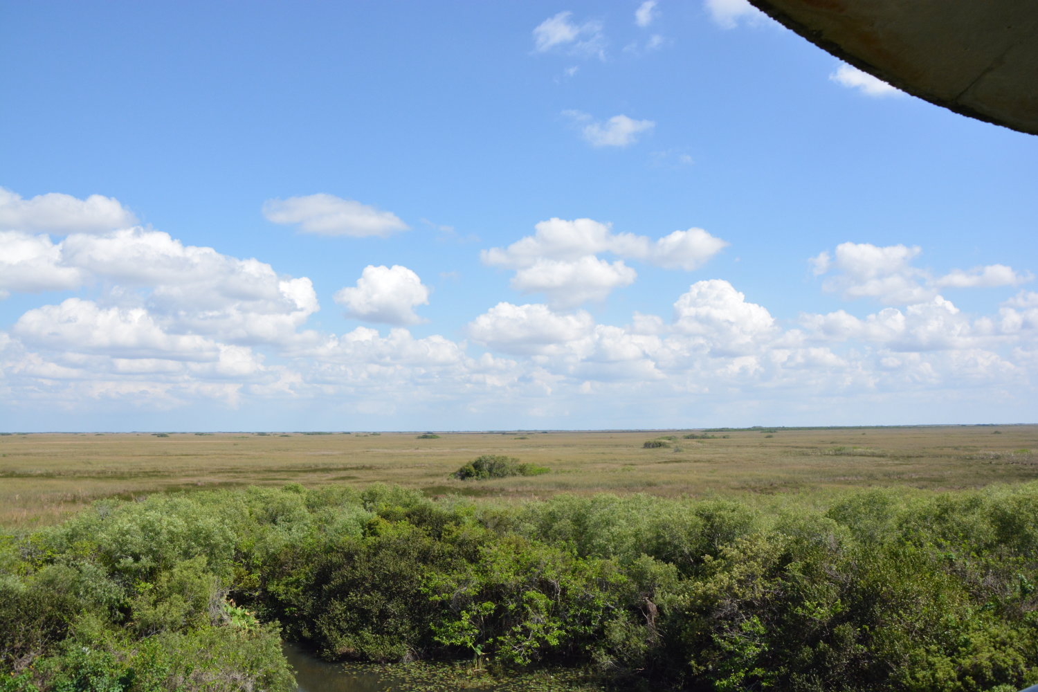 Wenn man nach (Süd)Florida fährt, muss man sich auf jeden Fall die Everglades anschauen, ein riesiges Marsch- und Sumpfland (der Nationalpark, der nur einen kleinen Teil ausmacht, ist ungefähr 3mal so groß wie das Saarland). Es besteht in weiten Teilen aus Gras, Mangroven und Pinien. Dabei steht so ziemlich alles davon unter Wasser, wenn auch nur ein wenig: in der Regel weniger als einen Meter. Das Wasser fließt dabei sehr langsam und gemächlich von Nord nach Süd. Der Mensch hat, wie es sich für ihn gehört, natürlich bereits einen Großteil zerstört, da er zum einen das Wasser wollte, zum anderen aber auch Land trockenlegte, zum Bauen und für Landwirtschaft (das Bevölkerungswachstum ist enorm: während 1950 noch 700.000 Leute im Großraum Miami wohnten, sind es 2010 schon 5,5 Mio.). Momentan versucht man, Teile der Schäden wieder zu beheben, bzw. zu mindestens dafür zu sorgen, dass der Naturraum nicht komplett vor die Hunde geht.