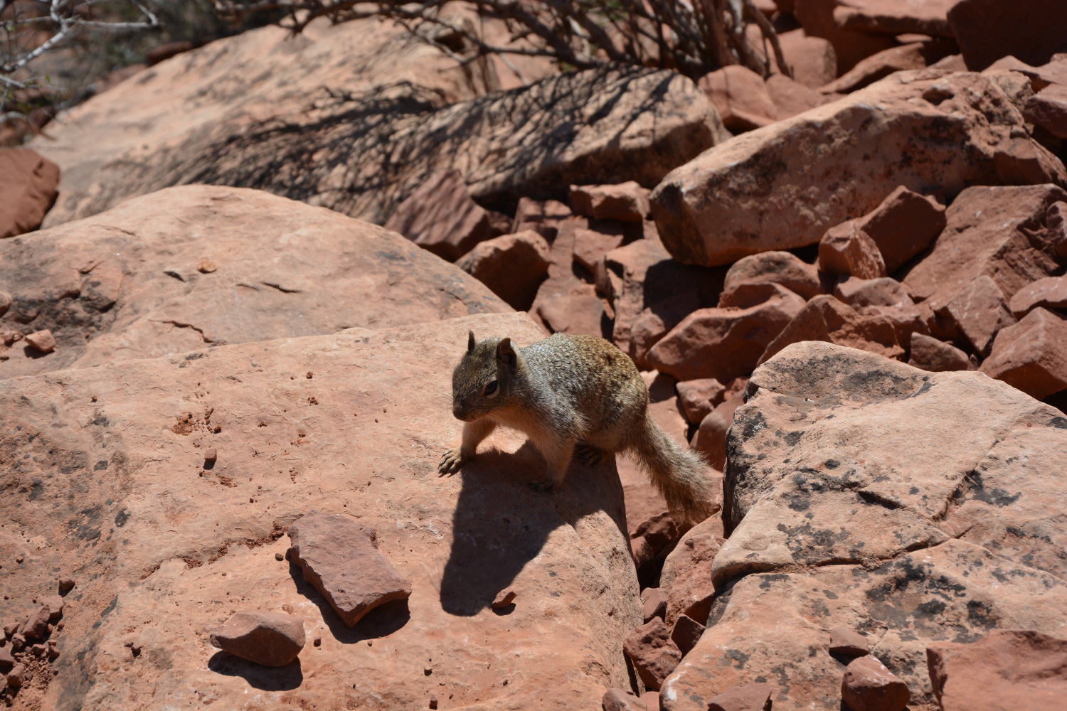 Dann machten wir uns auf den Rückweg — zum Glück, muss man sagen, denn der Aufstieg war wirklich deutlich beschwerlicher für zwei Untrainierte wie uns. Oft Pausen machen, viel trinken und Salzhaltiges essen, sagten die Empfehlungen. Daran hielten wir uns. Glücklicherweise sind wir an dem Tag schon relativ früh losmarschiert, so dass wir der Mittagssonne entkamen und im Canyon noch reichlich Schatten vorfanden.