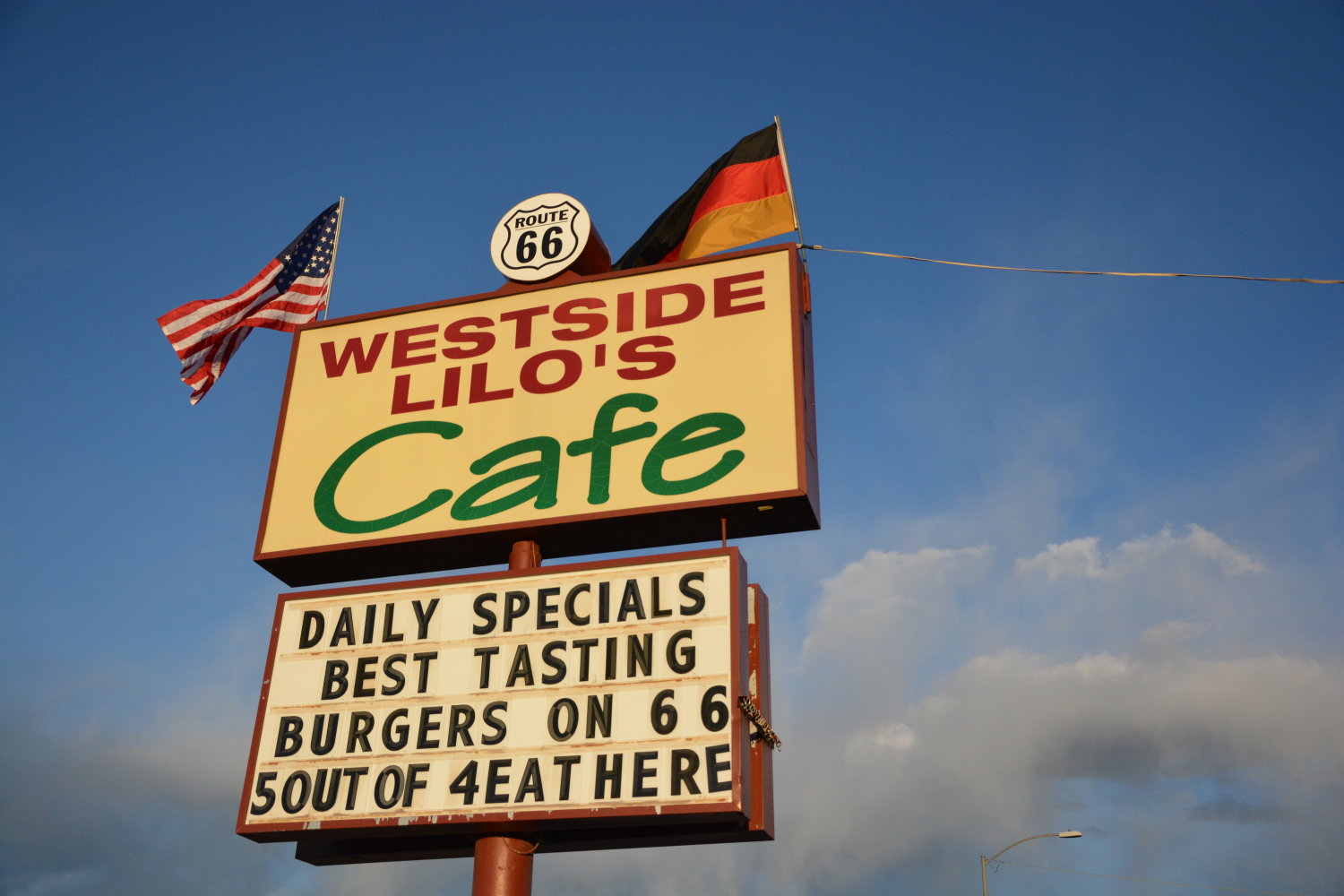 Das Motel selbst war recht unspektakulär — außer dass es mitten im absoluten Nirgendwo gelegen war. Daher auch kein Handyempfang und kein WLAN, ergo kein Lebenszeichen von uns. Warum waren wir da überhaupt? Wir hatten uns überlegt, einen Teil der Route nicht auf langweiligen Interstates (=große Autobahnen) zurückzulegen, sondern auf der historischen Route 66. Die Straße war denn aber doch ebenso wie das Motel: man konnte es benutzen, in Erinnerung bleiben wird es nicht.