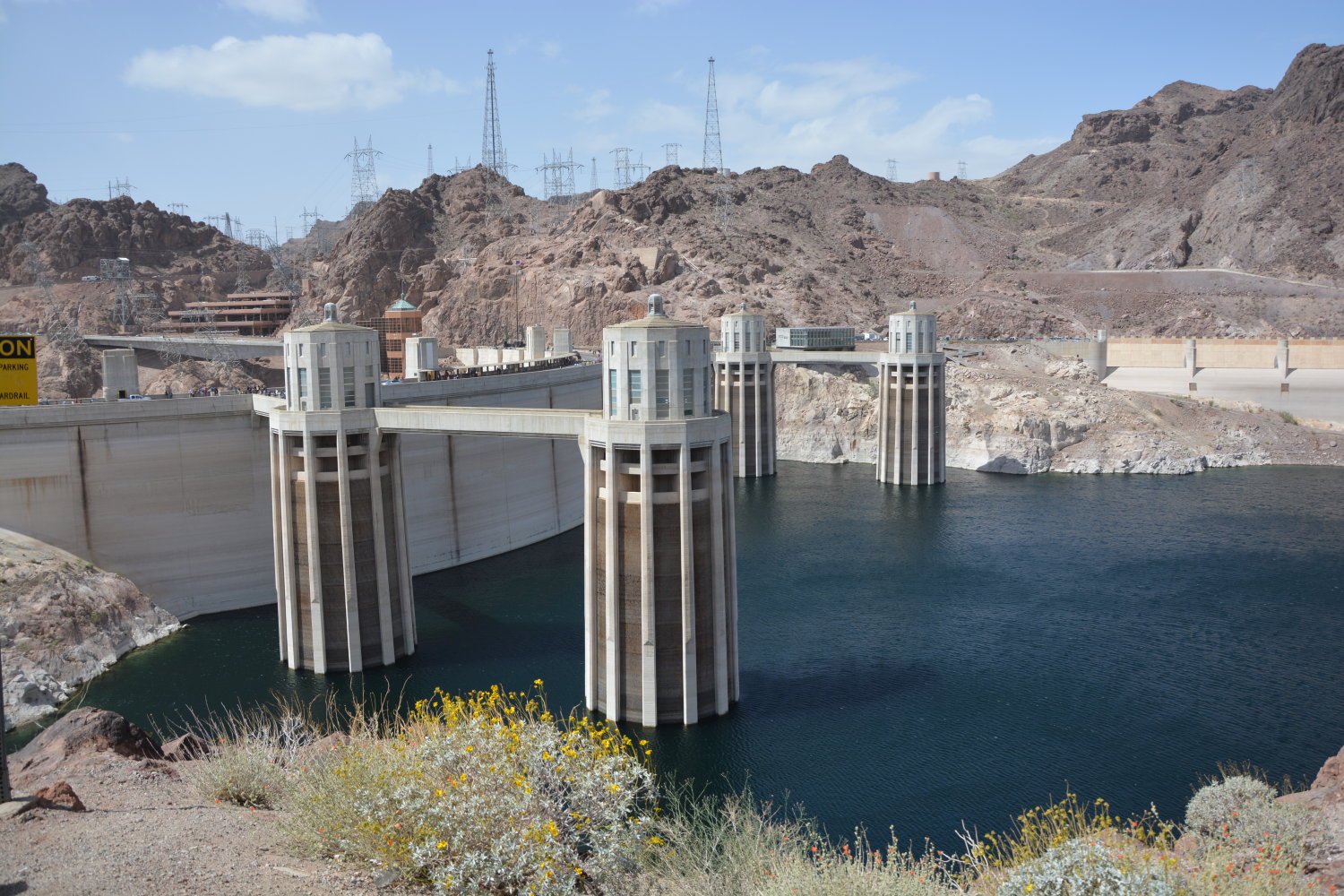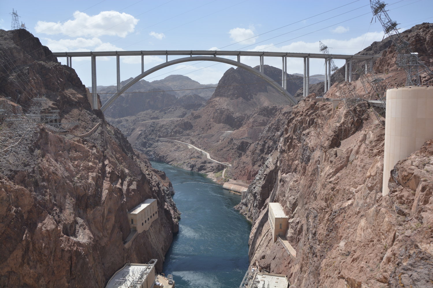 Anschließend hieß es noch einmal ca. 2 Stunden fahren bis Las Vegas. Auf der Fahrt dorthin gab es eigentlich nur zwei Besonderheiten: Einerseits haben wir einen Zwischenstopp beim gigantischen Hooverdamm gemacht, der um 1930 erbaut wurde. Andererseits sind wir auf der Fahrt mitten in einen mittelschweren Sandsturm geraten. Der allein wäre nicht so schlimm gewesen, aber er pustete Tausende von Tumbleweedbüschen auf die Straße, die sich wie in Rudeln vor unser Auto warfen, dort zerplatzten (und sich in unserem Kühlergrill festsetzten). Tumbleweeds (also etwa “Stolpergras”, einen richtig schönen deutschen Begriff gibt es dafür nicht) sind Büsche, die sich irgendwann von ihrer Wurzel lösen, um vom Wind woanders hingetragen/-gerollt zu werden. René hatte in dem einen Kommentar bereits geschrieben, wie das aussieht: