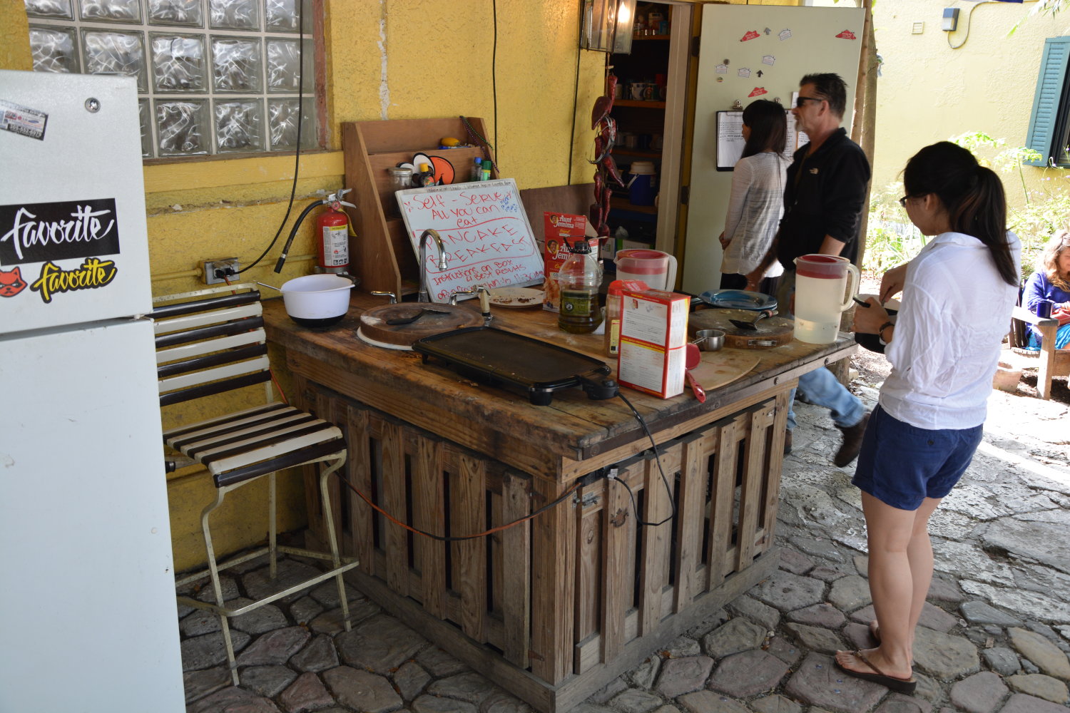 Untergekommen sind wir nicht direkt in Miami, sondern in Florida City, der südlichsten Festlandstadt der USA (wenn man auf Google Maps schaut, das ist so auf einer Höhe mit dem südlichen Ägypten). Dort schliefen wir in einem Hostel, einer Art Jugendherberge, hatten dort aber ein 2er-Zimmer. Die Anlage ist unglaublich: Man kann auf Wunsch auch einfach draußen schlafen, unter dem Sternenhimmel, in einem Zelt, in einem Baumhaus, auf dem Dach eines Pavillons… Und sie haben eine Outdoor-Dusche, in der man neben Palmen stehend unter freiem Himmel duschen kann. Bei minimal 22 Grad auch nachts ist das ja alles kein Problem. Morgens gab es kein Frühstück, stattdessen alle Materialien, die man zum Zubereiten von Amerikanischen Pfannkuchen brauchte. Die Küche war, wie so viel anderes auch, natürlich draußen :).
