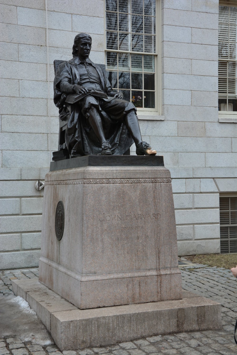 - Das ist nicht John Harvard; zum Zeitpunkt als die Statue erschaffen wurde, wusste niemand mehr wie er aussah. Alle Bilder waren bei einem Brand zerstört.