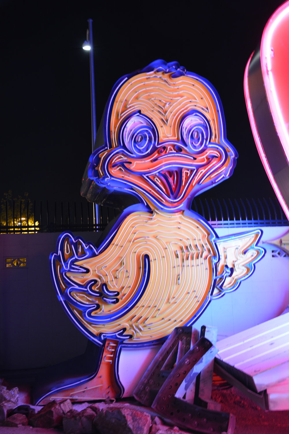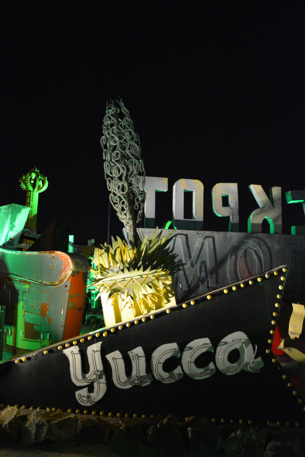 Am Abend mussten wir uns dann nochmal auf Las Vegas Straßen quälen, denn wir hatten einen Besuch im Neon Museum geplant. Die widmen sich dem Erhalt und der Restaurierung der alten ausrangierten Neon-Schilder, die so typisch für Las Vegas’ Hotels, Casinos und Läden sind. Die Führung war echt gut und die Schilder gewaltig. Leider waren nicht so viele eingeschaltet, da die meisten defekt sind und erst nach und nach restauriert und repariert werden können, was wohl auch recht teuer ist, da die Neonröhren von Hand gebogen werden müssen.