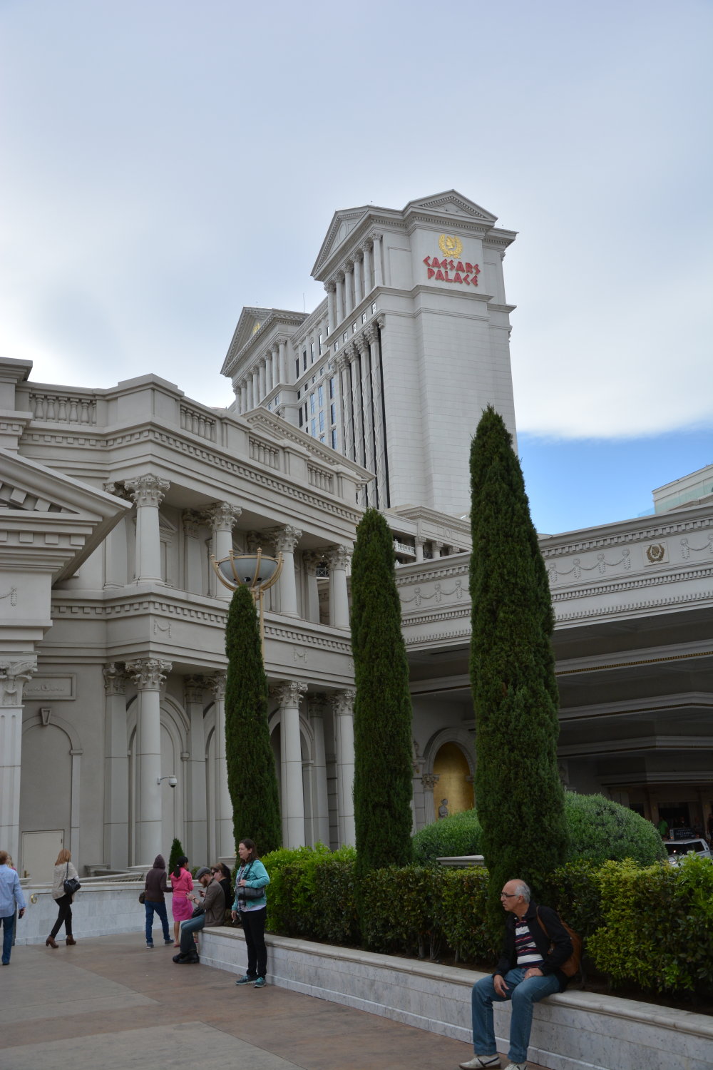 Am zweiten Tag liefen wir tagsüber ein gutes Stück den Strip hinauf und schauten uns mal die anderen Hotel-Casinos neben unserem an, die der Reiseführer empfiehlt. Im Nachhinein muss man sagen, gleichen sich viele der großen sehr stark, vor allem im Casino-Bereich. Einige hatten aber einen schönen eigenen Stil, wie das Ceasar’s Palace (alles griechisch-römisch angehaucht), das Paris (aufgemalter blauer Himmel im Casino und große Kunstbäume zwischen den Einarmigen Banditen!), oder das Cosmopolitan, das irgendwie coolen Understatement-Kitsch und viiiel freie Fläche in den Fluren hat. Wir sind uns einig: Wenn wir nochmal nach Las Vegas fahren, geht’s ins Cosmopolitan (leider ein wenig teurer…).